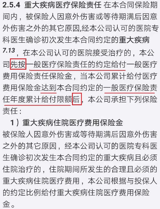 被診斷為重大疾病,首先按一般醫(yī)療保險(xiǎn)責(zé)任金報(bào)銷,并在達(dá)到一般醫(yī)療保險(xiǎn)責(zé)任限額后,重大疾病保險(xiǎn)責(zé)任金報(bào)銷。