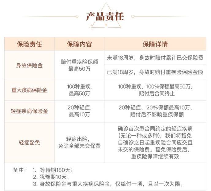 死亡保障:死亡支付在18歲之前支付保險費用,在18歲之后支付保險金額
