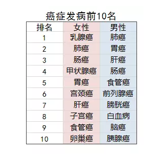 根據(jù)2018年2月,國家癌癥中心發(fā)布的中國最新癌癥數(shù)據(jù)表明,在中國每天都有1萬多人確診新發(fā)癌癥。而癌癥發(fā)病前10如下:
