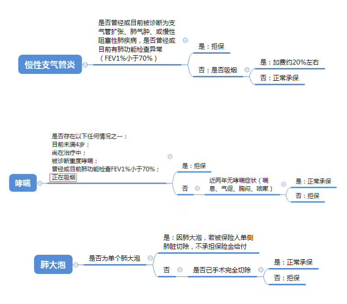 我們可以看出,在跟肺有關的健康告知里,如果不吸煙對我們投保是很有利的。吸煙的話少則加費,重則拒保。并且對于支氣管擴張、肺氣腫、肺部結節(jié)等情況,哆啦A保是直接拒保的。