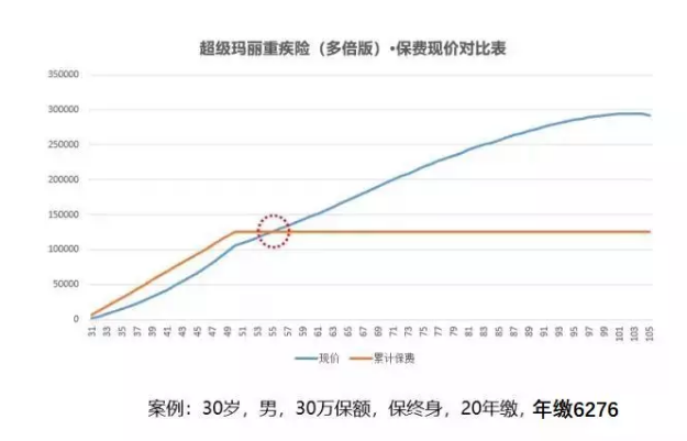 超級(jí)瑪麗多倍版在到55歲時(shí)現(xiàn)金價(jià)值就超過了保費(fèi)。