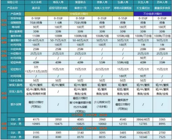 對(duì)于預(yù)算充足的朋友,可以選擇多次賠付的重疾險(xiǎn),畢竟保障會(huì)更加全面。而市場(chǎng)上也有不少同類的高性價(jià)比的產(chǎn)品。