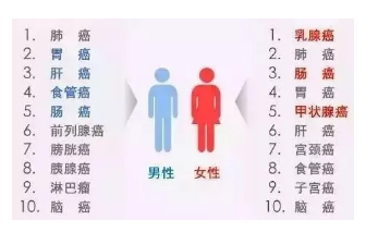 這張圖出自《2017年中國腫瘤登記年報(bào)》,從圖中我們可以看到我國男性、女性高發(fā)的10種癌癥。報(bào)告中稱高發(fā)癌癥占總患病率的76.48%