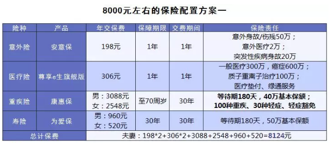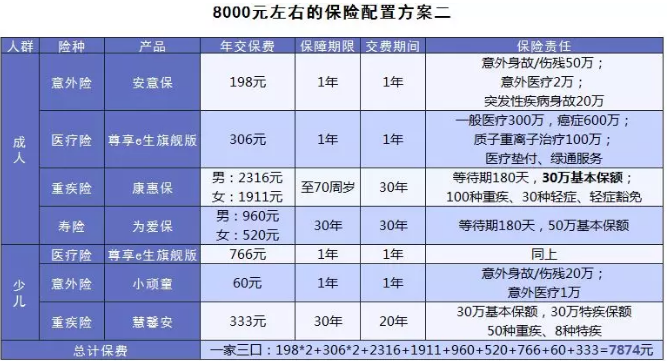 2)8000元左右,我們可以有兩種選擇,一是盡可能做高大人的保額,使保障更全面;另一種就是在保障了大人的基礎(chǔ)上,將剩下的預(yù)算給孩子買保險(xiǎn)。