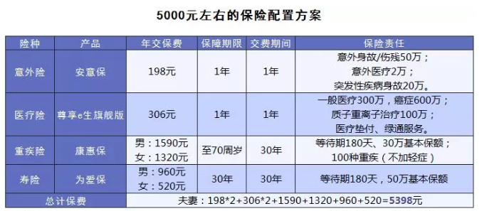 3)5000元左右我們先只考慮給大人買保險(xiǎn),最大程度規(guī)避風(fēng)險(xiǎn)。