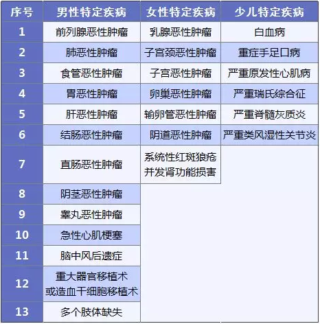 有三種:男性特定疾病、女性特定疾病、少兒特定疾病。我們來(lái)看一下具體都包含哪些疾?。?/p>