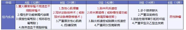 表格中標(biāo)紅的6種疾病為比較高發(fā)的重疾,從分組上來看,算是比較合理的。