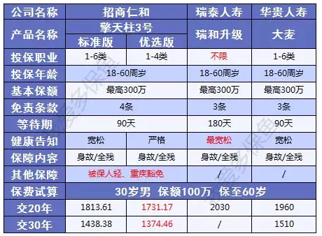 擎天柱3號分兩個版本,標(biāo)準(zhǔn)版和優(yōu)選版,差別主要體現(xiàn)在健康告知上。