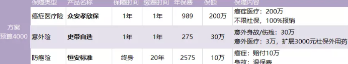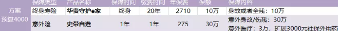 意外險杠桿率很高,保費便宜。讓我們來看看兩個年齡段的保險計劃,并直觀地了解保障責任和保費。