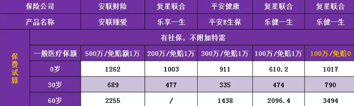 樂健一生組合方式比較多,首先看一下沒有附加社保的特需情況。同樣免賠額情況下年齡越小樂健一生保費(fèi)越低。不要擔(dān)心保額100萬或200萬,這只是一個噱頭。