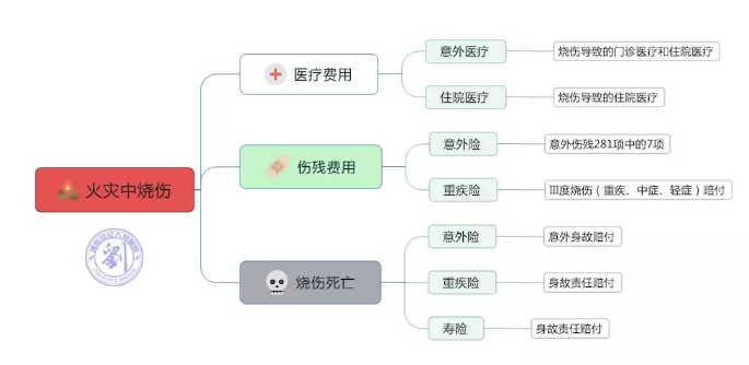 如果燒傷更嚴(yán)重或火災(zāi)更嚴(yán)重,導(dǎo)致死亡,那么重大疾病保險、意外險和壽險可以得到賠付。最后,我們整理了發(fā)生火災(zāi)時的不同情況,以及哪種保險可以彌補(bǔ)。