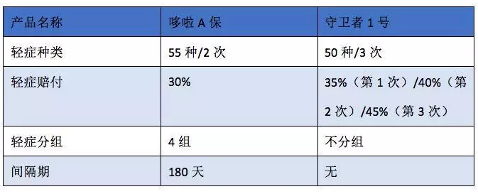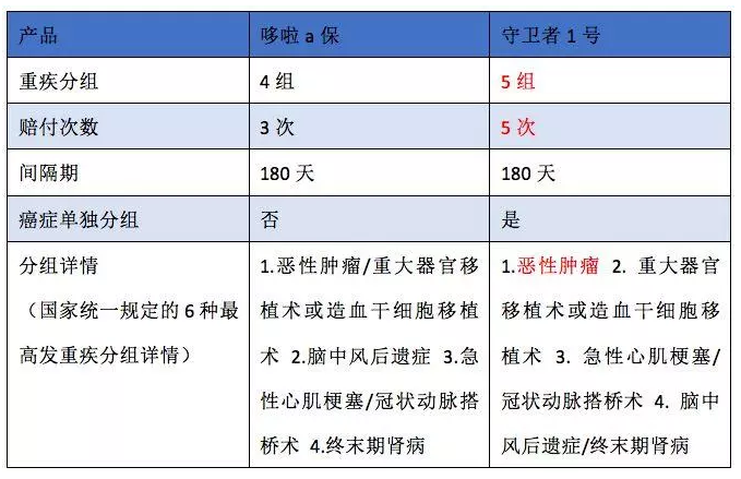 與產(chǎn)品相比不僅可以超過(guò)價(jià)格,哆啦A保的覆蓋范圍可以說(shuō)是非常全面和科學(xué)的,而輕癥2次嚴(yán)重疾病2次的安排更為合適。所以除了價(jià)格和賠付次數(shù),保障中的守衛(wèi)者1號(hào)細(xì)節(jié)上,有什么優(yōu)勢(shì)呢?