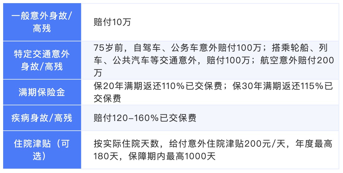 例如,中國x壽的百萬如意行長期意外險(xiǎn),產(chǎn)品名稱說的百萬只是針對交通意外身故和高殘才有,而對應(yīng)其它更多意外情況的一般意外和高殘,保額只有10萬。