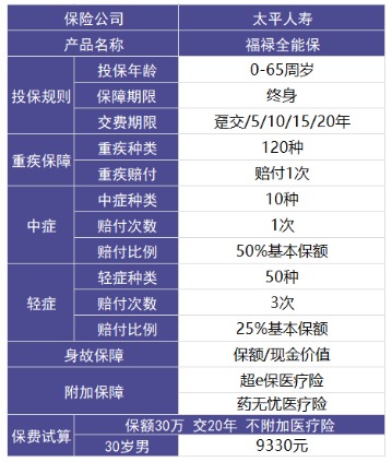 福祿全能保保障的重疾種類(lèi)有120種,賠付一次,賠付基本保額。