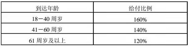 對(duì)應(yīng)的賠付比例如下: