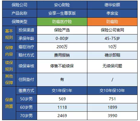 我還選擇了兩個以前推薦的防癌險、防癌醫(yī)療保險作比較,你可以直觀地看一下: