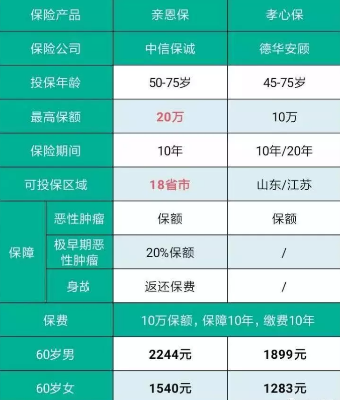 兩者相比,各有各的優(yōu)勢和劣勢,但是在相對于保費看來,孝心保的性價比是比較高的,雖然保額和保障范圍存在劣勢,但是基本的老年人的保障也都到位,而且保障期限長,健康告知的要求也比較低,易投保也是它的一大優(yōu)勢,多保魚還是很推薦的。