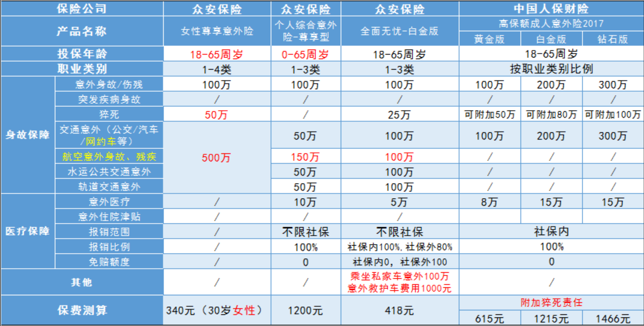 大多數(shù)數(shù)百萬的返回類型意外險(xiǎn)多保魚已經(jīng)在之前進(jìn)行了測(cè)評(píng),其保險(xiǎn)航空保障的保額覆蓋率高,并且一般意外保險(xiǎn)保額非常低,例如100萬到10萬之間的差異。航空事故比普通事故更普通,是小概率事件,使小概率事件變高,并且經(jīng)常遇到的常見意外保險(xiǎn)金額減少。這顯然是為了做噱頭,沒有實(shí)際意義。