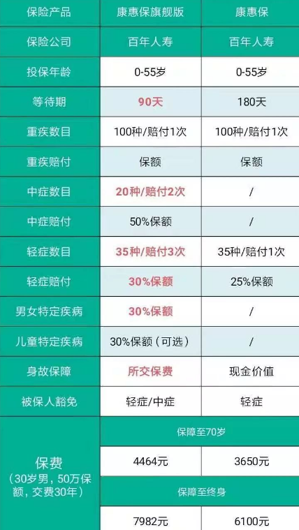 百年人壽康惠保和康惠保旗艦版的對比分析