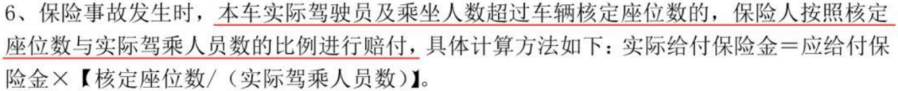 例如,每個座位保險金額為100,000,汽車有5個載體。在發(fā)生事故時,有6個人坐在車?yán)铮悦總€人的賠補償是10 * 5/6 = 83,000。