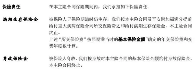 如果在保障期間發(fā)生嚴(yán)重疾病或死亡,賠付保額,則合同結(jié)束;如果在保障內(nèi)沒(méi)有嚴(yán)重疾病或死亡,則返還的所有保費(fèi)都被返還。