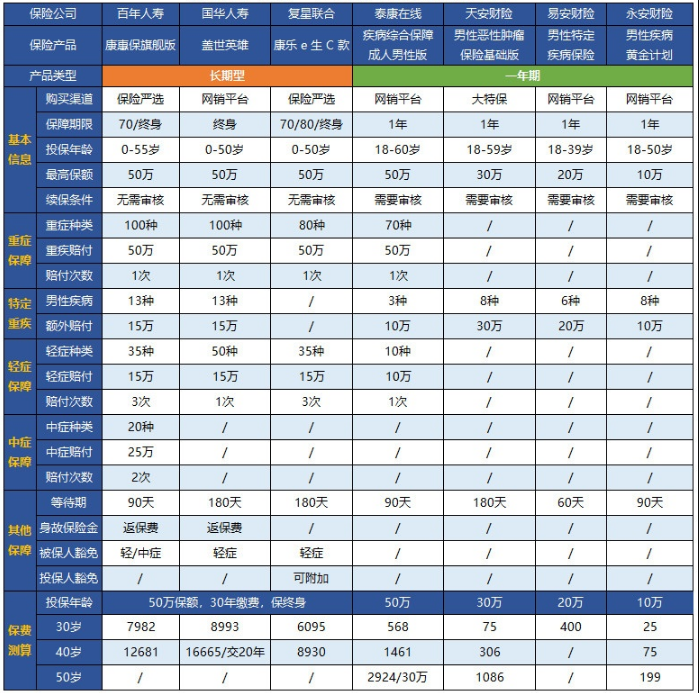 我們要知道,其實只要購買了足夠的保額,其實保障都是購的,特別是對于我們普通人來說,基本上就可以應對大病帶來的風險。但是,家里有這么么一個人是家庭里面最重要的,他負責得了家庭的主要經(jīng)濟來源,那就是孩子的爸爸、妻子的丈夫了。男性里面也存在特定保險,有些人為了保險的針對性,會對男性特別投保一份額外的保險。多保魚通過搜索,發(fā)現(xiàn)了以下的幾款產(chǎn)品: