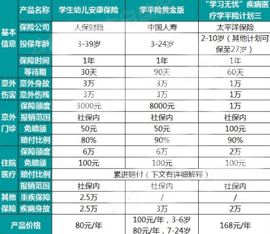 孩子是一個家庭的未來和希望,父母都希望孩子們能夠健康成長,每年新學(xué)期伊始,就到了家長為孩子們購買學(xué)平險的時候。今天選了三款比較有代表性的學(xué)平險,人保財險的學(xué)生幼兒安康保險、中國人壽的學(xué)平險黃金版、太平洋保險的“學(xué)習(xí)無憂”疾病醫(yī)療學(xué)平險,這三款都是比較常見的學(xué)平險,我們來看下哪款更值得購買。