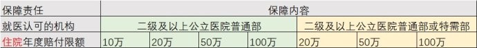 1、住院責任分為:僅包含普通部和含特需部兩種方式