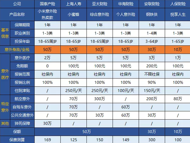 今天我對市場上的幾款意外險進(jìn)行了具體分析,測評產(chǎn)品如下: