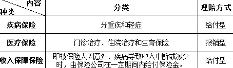 3、津貼類型:用于賠付被保險(xiǎn)人因事故造成無(wú)法正常工作的收入損失。