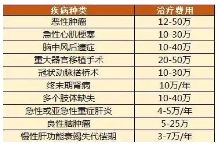 我有一張表詳細(xì)說(shuō)明了一些主要疾病的治療費(fèi)用。實(shí)際上,我想我必須購(gòu)買至少500,000。我朋友的妻子得了良性腦腫瘤。她住在ICU醫(yī)院兩個(gè)月,花了70萬(wàn)。我聽(tīng)說(shuō)家里人開(kāi)始賣房了。我不知道什么時(shí)候是頭。我無(wú)法想象發(fā)生在我身上的感覺(jué)。醫(yī)療費(fèi),房屋貸款,孩子的學(xué)費(fèi)和家里的日常開(kāi)支,以及后續(xù)康復(fù)的錢都是無(wú)底的。在這里,我們必須向每個(gè)人澄清一個(gè)概念,即重大疾病保險(xiǎn)不僅是醫(yī)療費(fèi)用,還包括康復(fù)護(hù)理的費(fèi)用和家庭收入損失的部分。