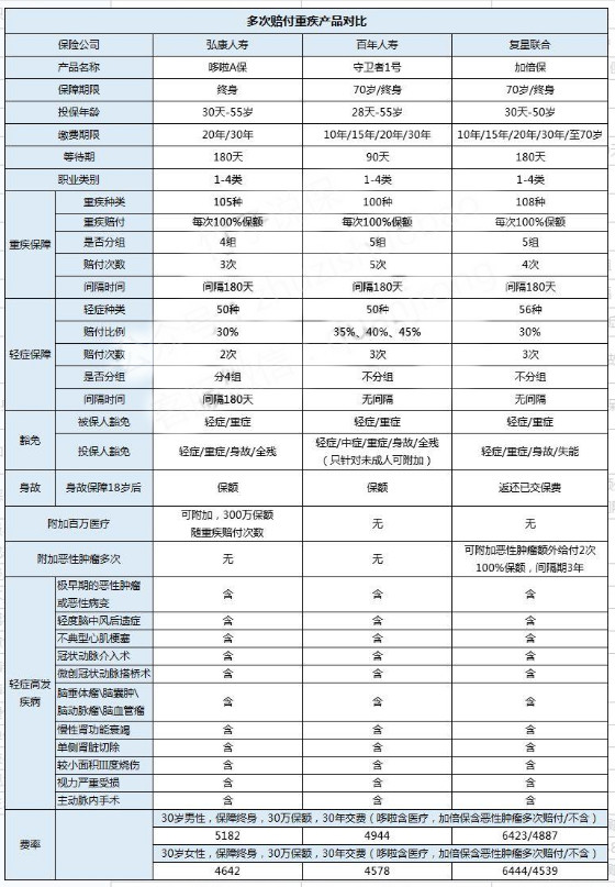 哆啦a保、守衛(wèi)者1號(hào)、加倍保三款多次賠付重疾險(xiǎn)測(cè)評(píng)