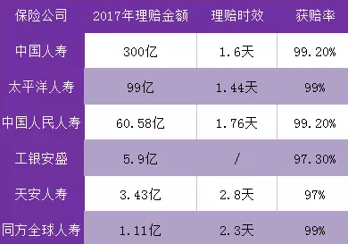 我們來看看2017年保險(xiǎn)公司的理賠數(shù)據(jù)