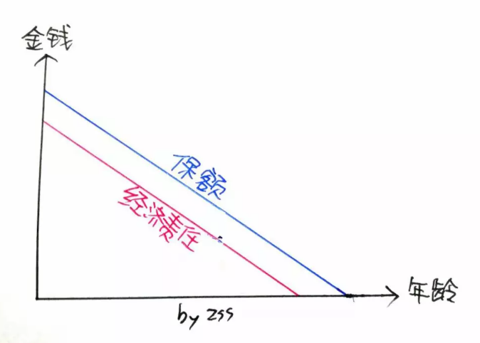 定期壽險(xiǎn)遞減保額是壽險(xiǎn)產(chǎn)品中的少數(shù)。為了讓朋友更容易理解,我畫了一張照片: