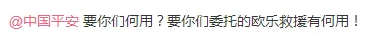 請問,楊女士尚在國內(nèi),她從何處得知遠(yuǎn)在伊朗的信息!在憤怒之下,楊女士發(fā)出這樣的怒吼:“@中國平安 要你們何用?要你們委托的歐樂救援有何用!”