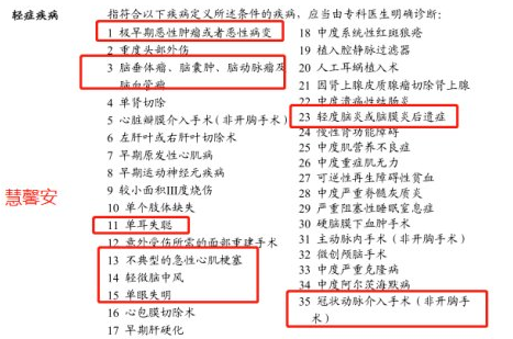 其中70種重大疾病賠付100%的保險金額,合同在支付后終止,還有另外10種其他特定疾病是賠付保險金額的兩倍,類似于慧馨安產(chǎn)品責(zé)任,但慧馨安是8種特點疾病,如圖所示: