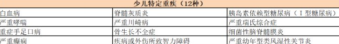 兒童特定的嚴重疾病:在被保險人年滿18周歲之前,第一次被診斷出患有特定的嚴重疾病(12種類型)。在支付重大疾病保險費的基礎上,額外給付保險費為100%。