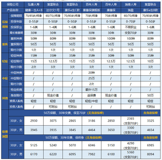 下圖是幾個我認(rèn)為還不錯的重疾險產(chǎn)品的橫向測評: