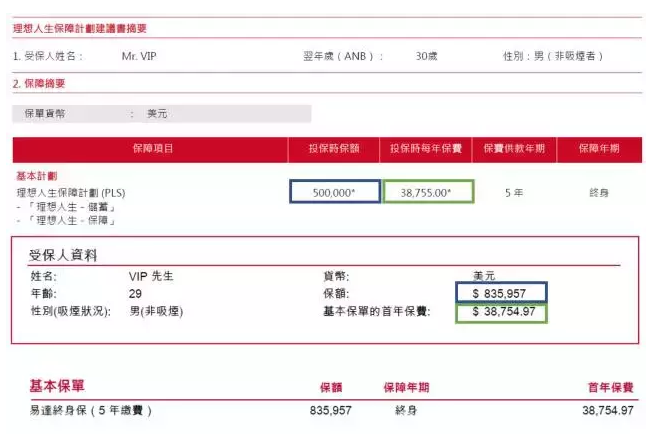 「易達(dá)終身?!棺鳛橐豢罱K身壽險(xiǎn),與相同的保費(fèi)可以移動(dòng)壽險(xiǎn)保額在同類產(chǎn)品中具有明顯的優(yōu)勢(shì)。與大陸產(chǎn)品相比,被稱為“內(nèi)地最具成本效益的終身壽險(xiǎn)橫琴“優(yōu)愛寶””,很容易被「易達(dá)終身?!箵魯 Ec香港產(chǎn)品相比,例如,一名29歲(30歲)非吸煙男性為例,對(duì)于保費(fèi)壽險(xiǎn)而言,5年年繳保費(fèi)的為38,755美元,以及「易達(dá)終身?!箍梢蕴峁┍n~的死亡。 836,000美元,而保誠(chéng)的理想人生僅提供 500,000美元,而「易達(dá)終身?!固峁└叩谋WC收益率和預(yù)期回報(bào)。