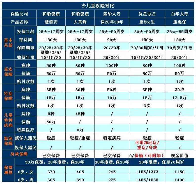為了方便大家,我們將兒童的重大疾病保險(xiǎn)與市場(chǎng)上的高性價(jià)比進(jìn)行了比較。有幾種模型并不專門針對(duì)兒童的特定嚴(yán)重疾病,但保障也非常全面,如下: